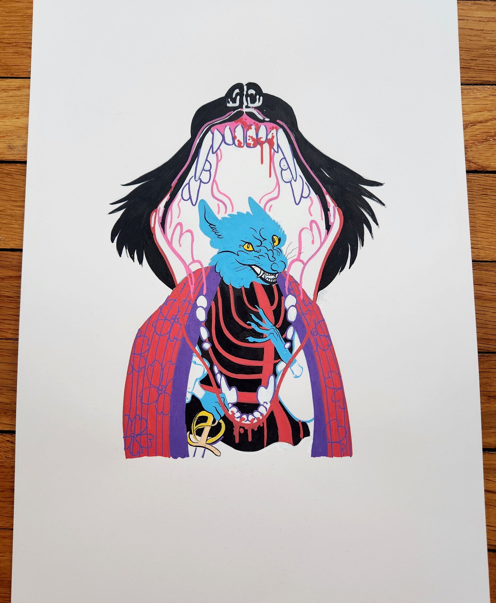 The Blue Fox from Jeff Vandermeer's Dead Astronauts. Paint and ink on bristol. 11X17.